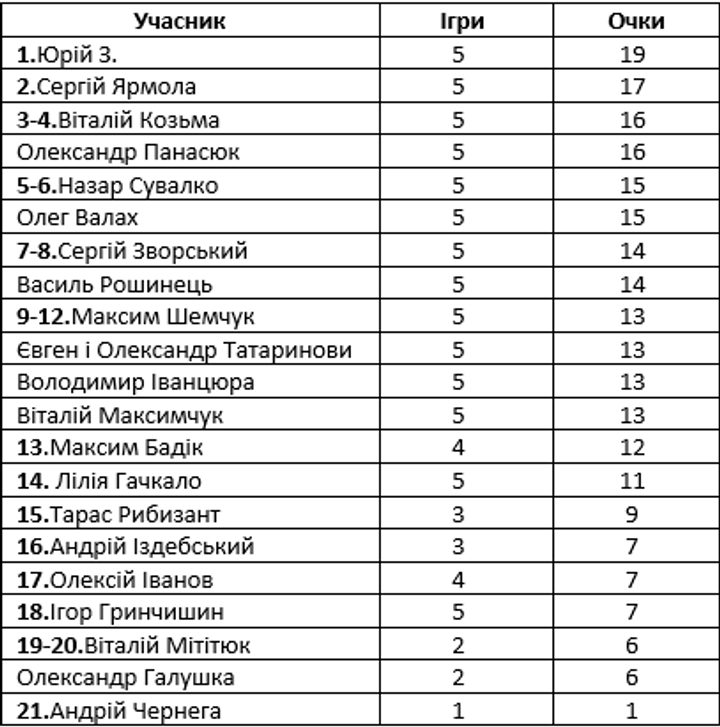 El hechizo ciego resultó estar a favor de Vitaly Kozma de Vinnytsia, que recibirá de nosotros playera tipo polo con logo. Solo juega fantásticamente Yuri Z., quien esta vez fue el más rápido en enviar respuestas absolutamente correctas. La carta suya fue recibida el 27 de noviembre a las 10:16 p.m. ¡y todavía son 5 puntos! Mostró segunda marcha Sergey Yarmola (22:32), pero ya tiene un llavero extra. Por lo tanto, el premio de consolación esta vez será para Ostrog, para Vitaly Maksimchuk (22:52). Pedimos a los dos ganadores que especifiquen si la dirección de recepción de los trofeos no ha cambiado.