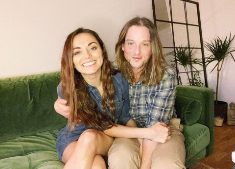 La pareja posó en el sofá para una foto, sin darse cuenta de que se convertirían en los personajes de la ilusión óptica.